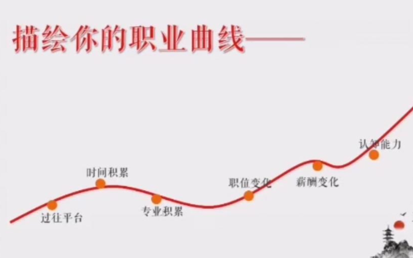 黄华总结出面试中常问的五个问题:你对本公司的了解情况?你最近3年的发展规划是什么?你对过去5年的工作经验满意吗?如何看待这份工作的能力要求?你认为自己的优势在哪些方面?黄教授根据这些问题也做出了大部分同学的职业曲线大致图像:过往平台、时间积累、专业积累、职位变化、薪酬变化、认知能力。