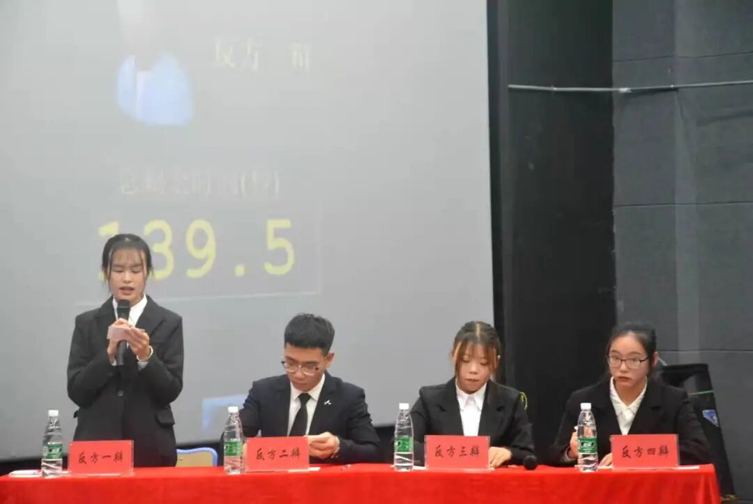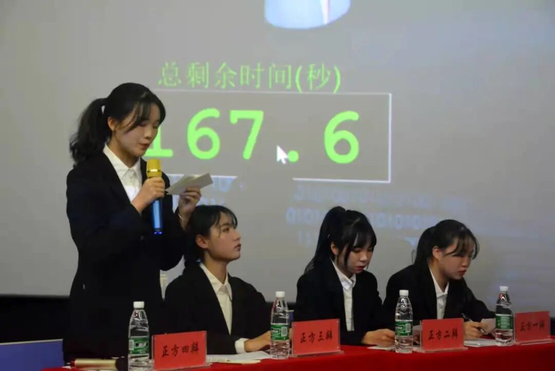 何为辩论?墨子云,“夫辩者,将以明是非之分,审治乱之纪,明同异之处,察明实之理。”为了丰富同学们课余生活,体现大学生朝气蓬勃、积极向上的精神状态,以及开拓同学们的思维和培养团队协作的能力与意识。汉口学院管理学院于2020年12月7日晚在三楼学术报告厅展开了一场精彩绝伦的“思辨杯”辩论赛决赛。莅临本次辩论赛的领导嘉宾有校团委副书记马朝冲老师,校团委指导老师范琼予老师,校团委指导老师金率老师,管理学院院长袁秋菊老师,管理学院党总支副书记郭浩平老师,人力资源部部长管理学院副院长胡欣老师,经济与金融学院分团委书记史丽娟老师,职业教育学院分团委书记方棚老师,管理学院分团委书记张超老师,辅导员杨磊老师,王环东老师,程蔷老师,校团委学生副书记张楷智同学,各兄弟院系主席团的学长学姐以及院系辩论队成员。