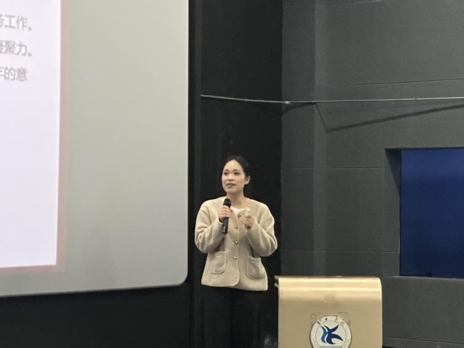 大会第二项,由管理学院分团委书记胡悦进行发言。他强调,各位团支书要坚决贯彻党的路线方针政策,履行引领凝聚青年、组织动员青年、联系服务青年的基本职责,带领团支部形成良好的学风,时刻注重团员的思想引领和团队协作能力培养,提升团员的综合素质。